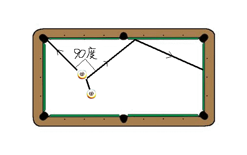 確実に入ると思う玉を、ヒットしてから綺麗に90度で分離させたいときはあえておじぎめに撞きます。ようは玉が割れるという現象をあえてするのです。水平だと変にキューが効いてしまう場合があるからです。